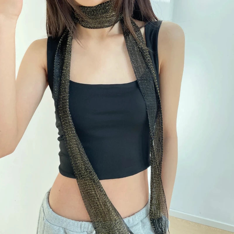 Y2k Gold Silver Bright Silk Sunscreen Shawl